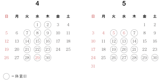 - 店舗営業日