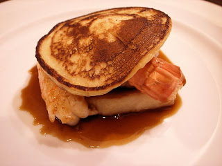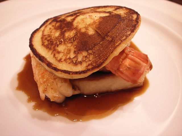 ジャガイモのクレープの乗った鶏肉のロティ。