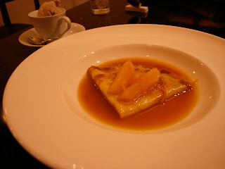 デザートはクレープシュゼット プラリネのアイス添え