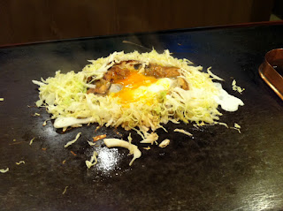 キャベツの土手の中に卵を落としバターで焼いた牡蠣を絡めながら頂きました。