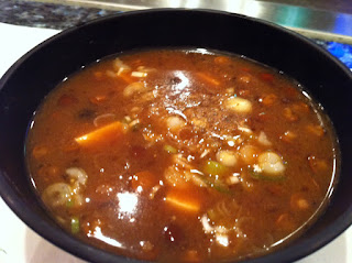 赤みそと白みそをブレンドしたナメコとお豆腐のお味噌汁。
