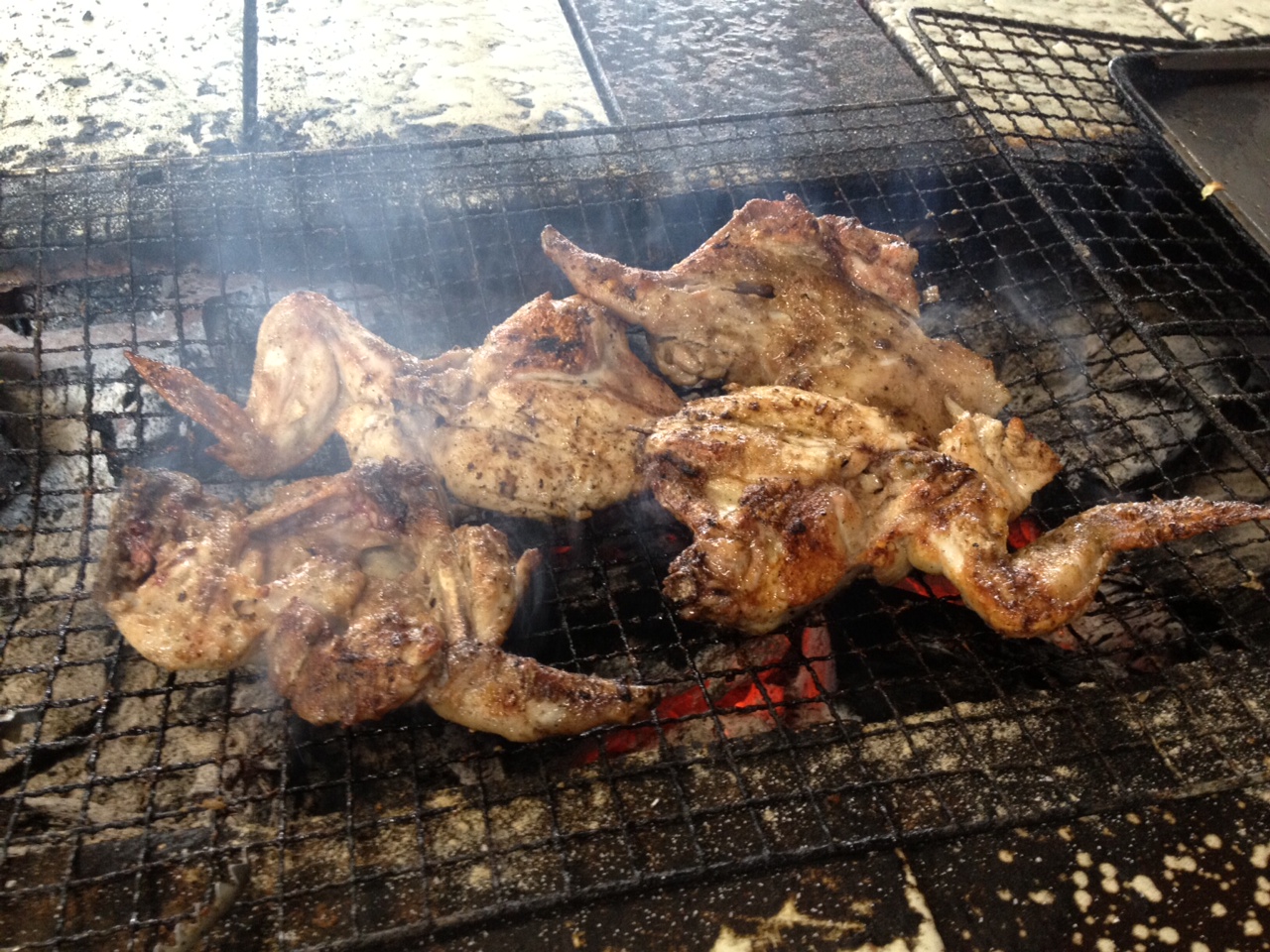 メニューはシンプルにバーベキュー(この鶏の半身分・画像は二人前ね)