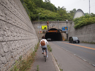 途中、歩道が切れ海沿いの車道をトラックにあおられながら走ったり、トンネル抜けて〜〜♪(ダイナマイツ、ね)と歌う余裕もない程の細い路肩のトンネルを走り抜け坂を上りたどり着いたその先には・・・・