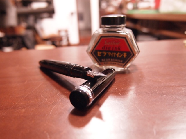 古いインキ瓶は幾つか持っているのですが、昔のセーラーのものは持っていなかったですし、なかなか実物に出会うことも無く数年探していたのです。