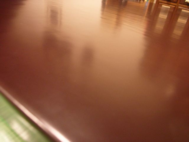 天板はランバーコアの板を付けただけで、リネンを掛けて使ってきました。