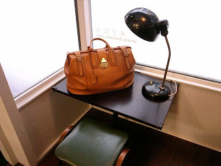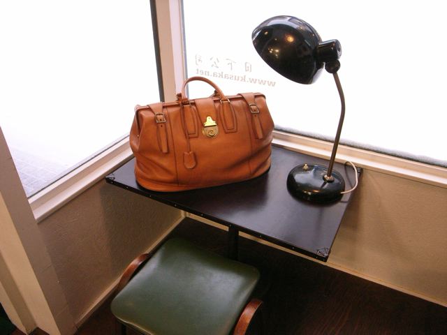 先日制作していた什器が出来上がっています。今は窓際でボストンバッグが乗せられています。