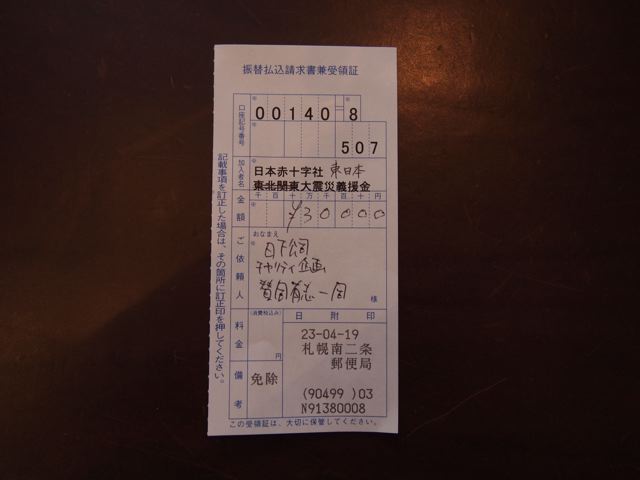 本日、みなさまにご賛同頂きお求め頂いた製品の売り上げ金額全額を東日本大震災の義援金として日本赤十字社に寄付させて頂きました。