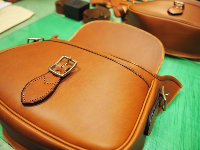 コニャック(茶)を二本。どちらも店頭用の在庫分として製作しています。ステッチは淡茶173。裏地は紺のものとチョコのもの。