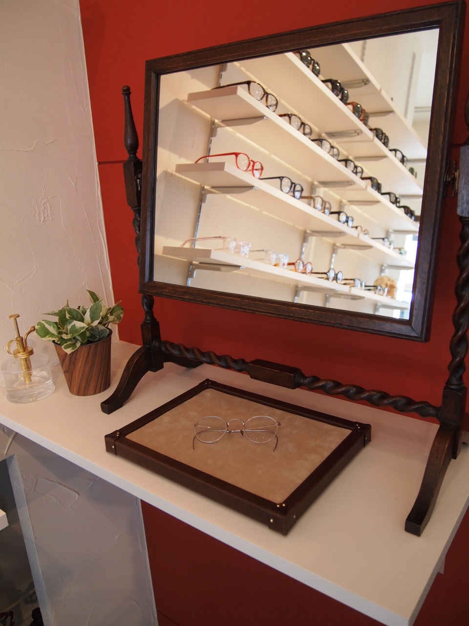 掛けている眼鏡を置いたり、選んでいる最中の眼鏡を幾つか置いたり・・・・。