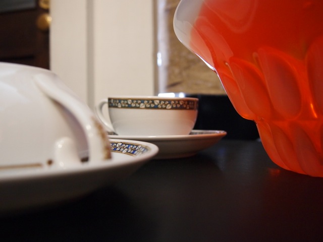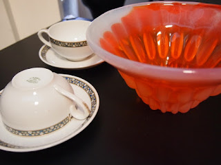 きれいな赤に乳白色が被せてあるガラスのボウル。