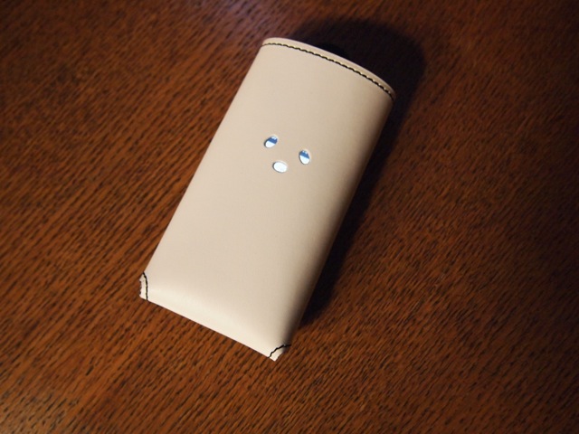 革の物でよく見るのは、ハードケースに革を貼り込んだ物。
