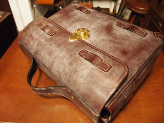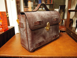 カブセを留めてグルリと廻るベルトとショルダーストラップを作り、付属の小さなパーツなんかを作ったら完成です。明日と定休日中の作業で完成させたいと思っています。