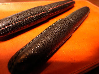 今、公開出来るのは黒桟革を使ってシボリで完全な革巻の万年筆を仕立てたと言うことまで。